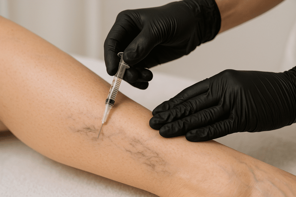 Sclerotherapy is a simple treatment that helps fade unwanted spider veins and small varicose veins, typically on the legs. A small injection is used to treat the vein, and over time, it fades and disappears. The procedure lasts less than 30 minutes, and doesn’t require any downtime. Most people need a few sessions for best results.